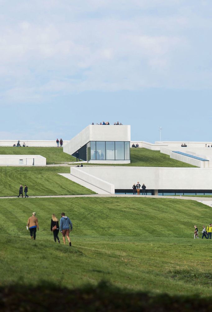 Når I har oplevet fortællingerne inde i bygningen, venter der endnu en oplevelse ovenover: Fra museets tagflade, som er åben for alle, finder I en fantastisk udsigt over Aarhusbugten og landskabet syd for byen. Taget er et oplagt sted for picnic om sommeren, kælketur om vinteren eller bare en pause i det fri — uanset årstid.