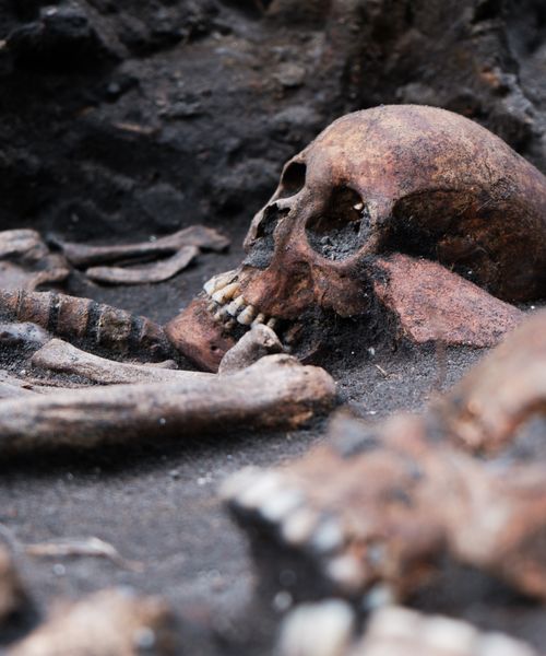 På Sankt Olufs Gade i Aarhus C har arkæologer fra Moesgaard netop fundet mere end 50 skeletter ved en historisk kirkegård fra 1100-tallet.