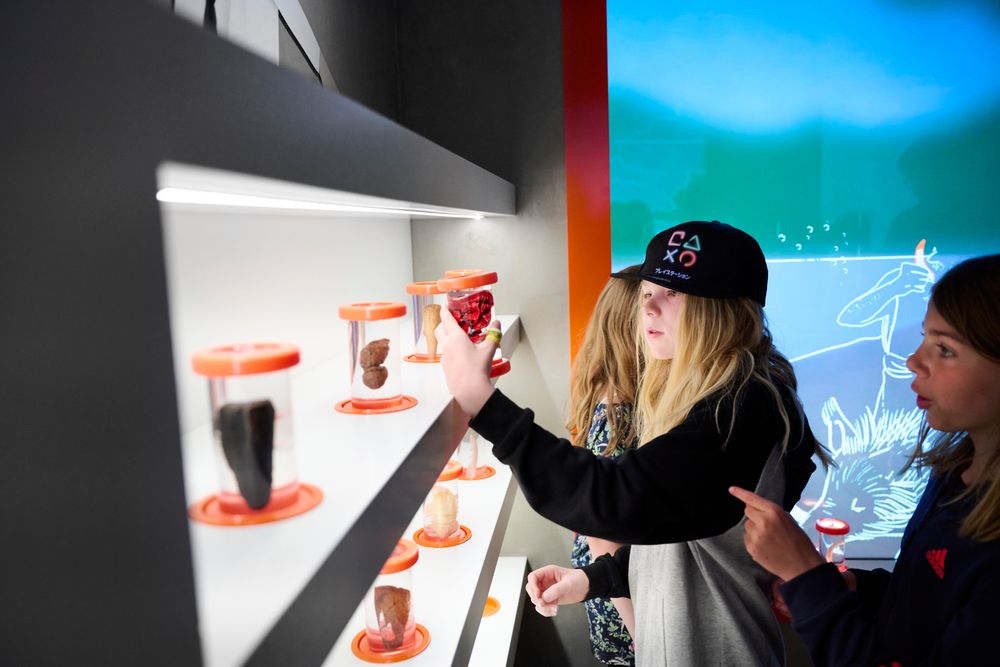 I udstillingerne kan I røre, lytte, læse, se og være med i fortællinger fra fortiden. Vi skal mærke historien med alle sanser for at forstå den!