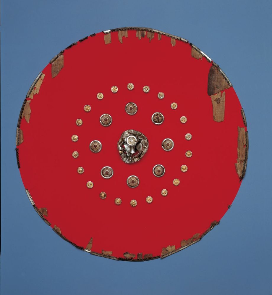 Skjoldmaterialet er yderst komplekst, fordi træet i vid udstrækning er bevaret. I nogle tilfælde er skjoldene fuldt bevaret med 5-8 skjoldbrædder, bule, håndtag, og randbeslag, i andre er så store dele af skjoldet bevaret, at de cirkelrunde skjoldes diametre har kunnet måles eller beregnes. 73 skjoldes diametre varierer mellem 87 cm og 115 cm med et gennemsnit på omkring 97 cm. I en del tilfælde er konstateret rødt farvestof, mens der kun sporadisk er fundet rester af læderovertræk.