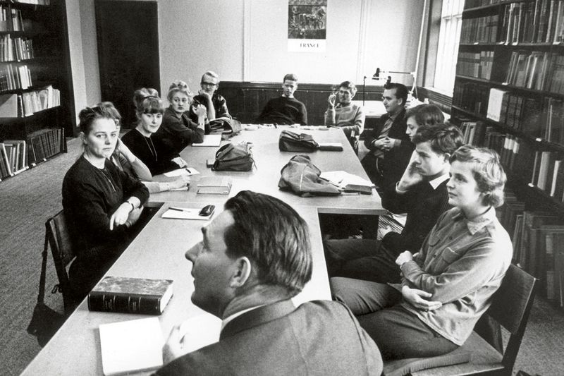 Vi var så få, vi studerende. I 1956, mit første studieår, var vi fem, og da jeg gik i hi med konferenslæsningen i 1962, var vi blevet en umådelig stor flok på 10-12.