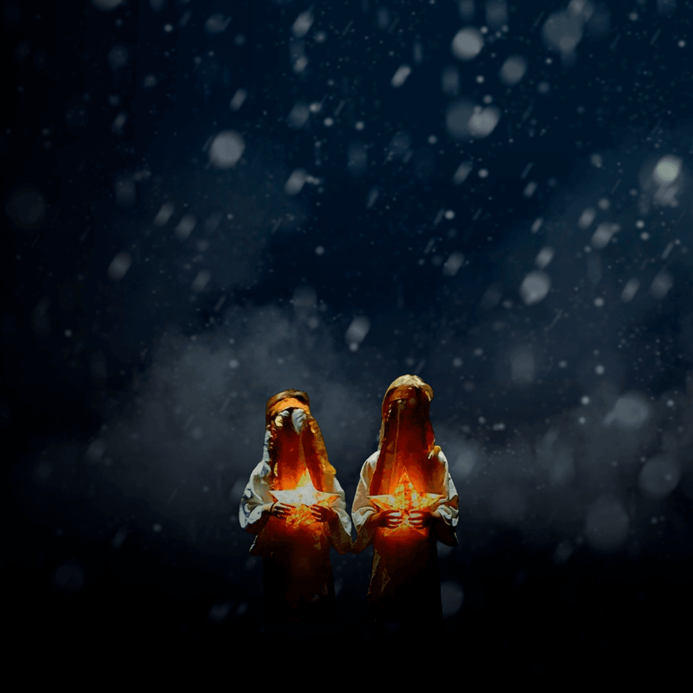 De børn af stjernerne. De glider hen over sneen som et snefnug i vinden. Let som hvide fjer. De siger ikke et ord, men bærer mystiske slør og stjerner.