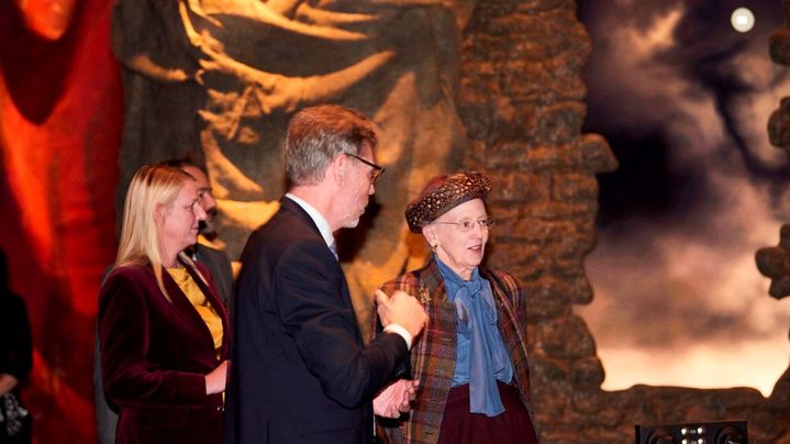 Moesgaard Museums nye særudstilling Ud af kaos - Mellem Roms ørne og Odins ravne blev fredag 11. november åbnet af Hendes Majestæt Dronningen, som ankom til museet med helikopter. Hendes Majestæt fik en rundvisning i særudstillingen af museets direktør Mads Kähler Holst og udstillingens projektleder Camilla Bjarnø og i selskab med blandt andre borgmester i Aarhus, Jacob Bundsgaard, den ungarske ambassadør i Danmark, byrådsmedlemmer og repræsentanter fra erhvervslivet og fra de fonde, som har støttet udstillingen.