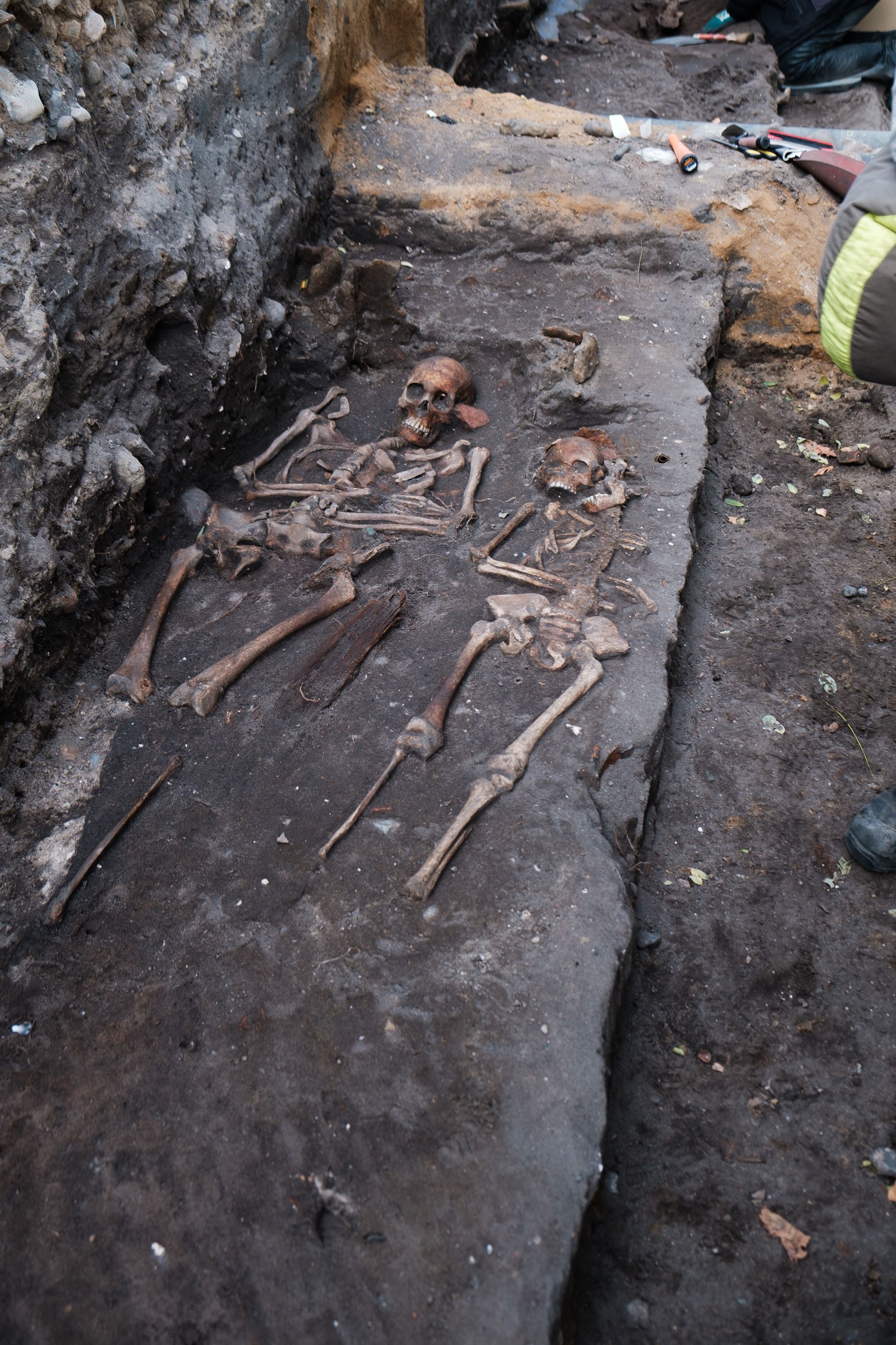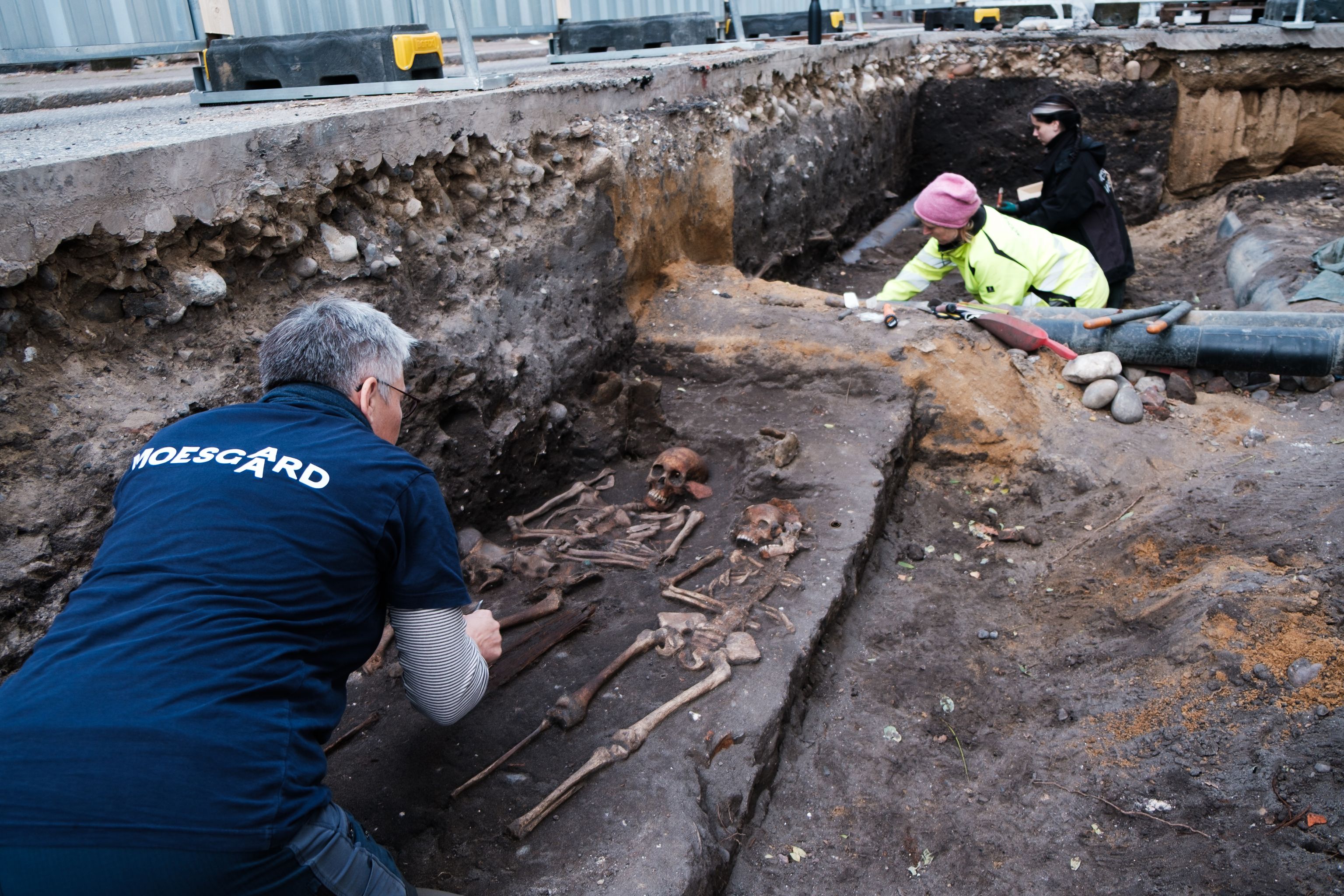 ◀ Moesgaards arkæologer har fundet mere end 50 skeletter samt enkelte genstande i Aarhus C.